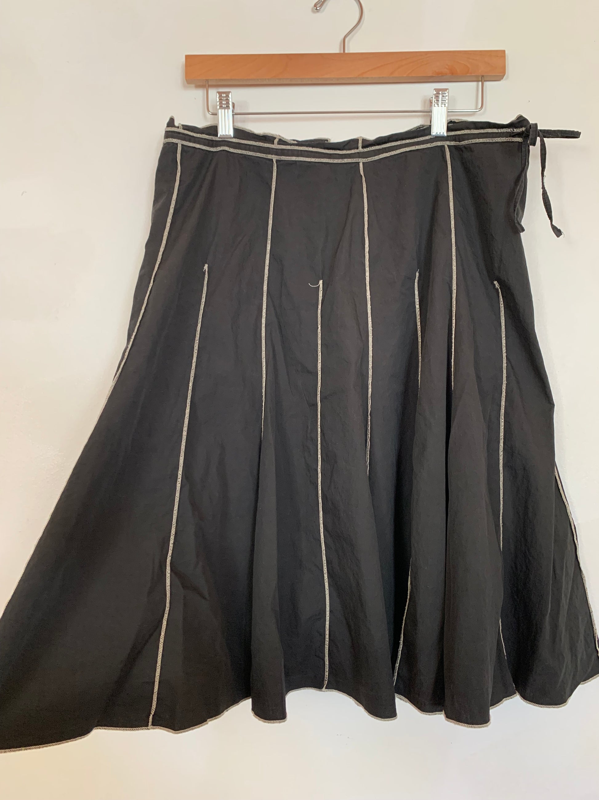 100% cotton contrast seam skirt, fully lined, charcoal and cream color with adjustable drawstring waist
