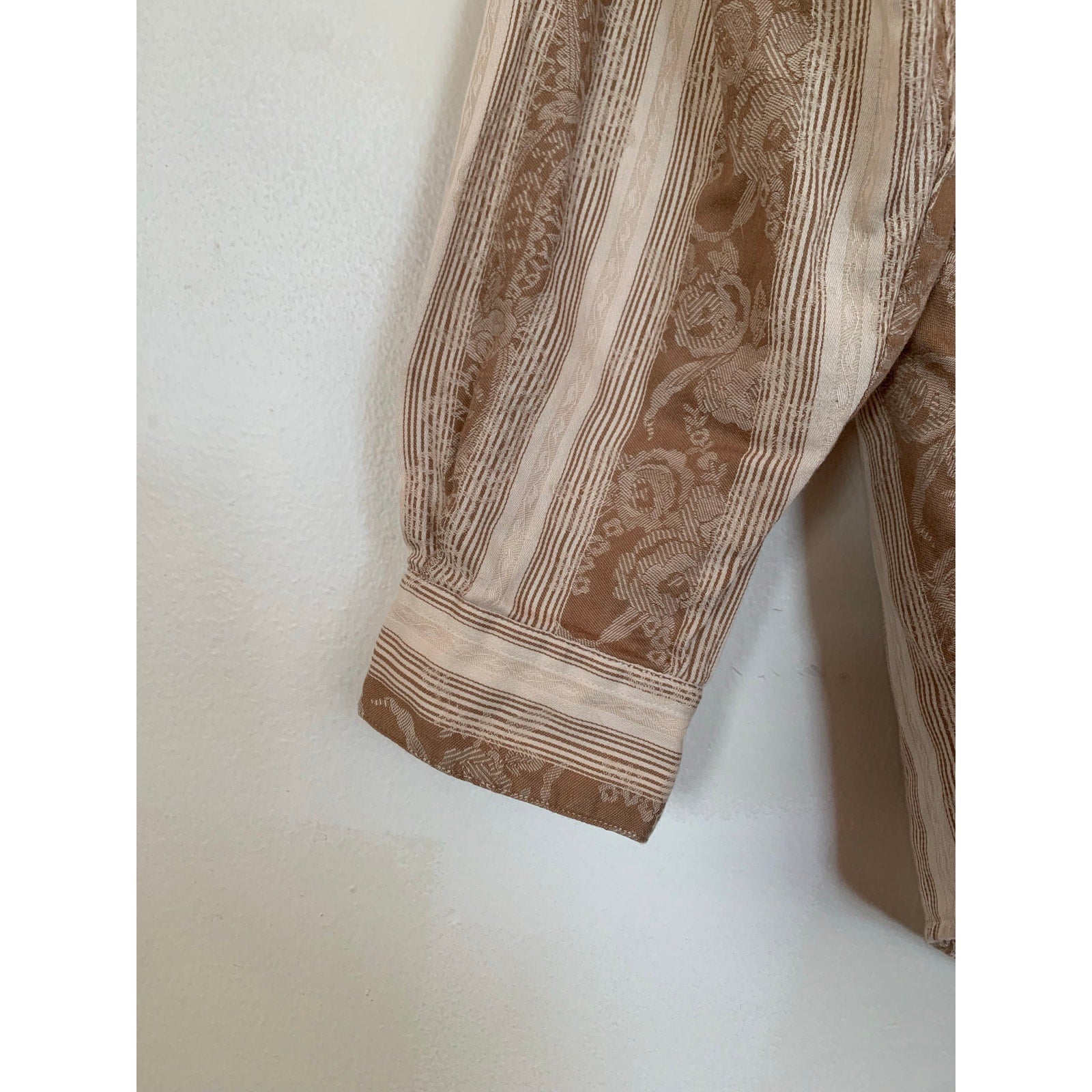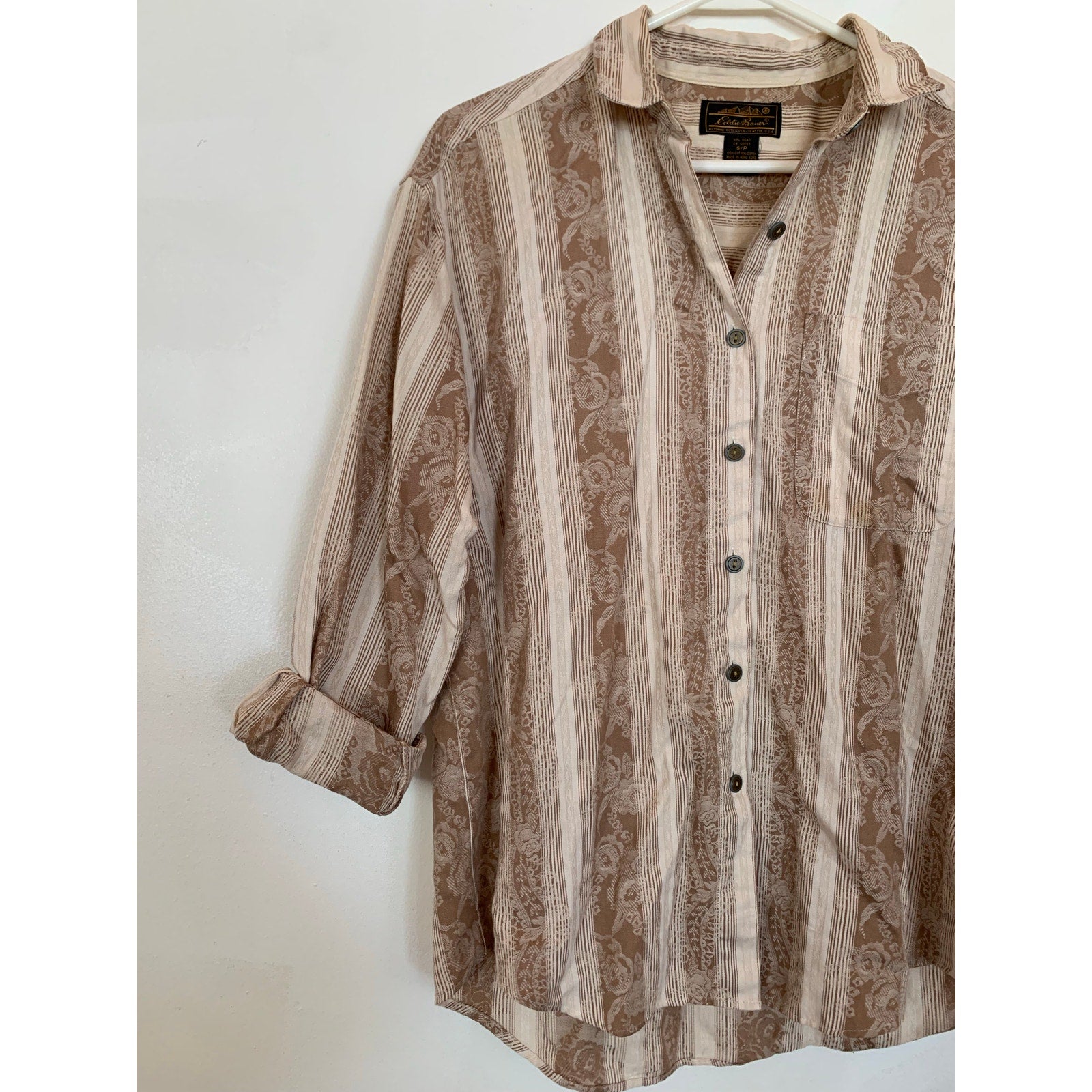 100% cotton Eddie Bauer button down; neutral tapestry print with front chest pocket